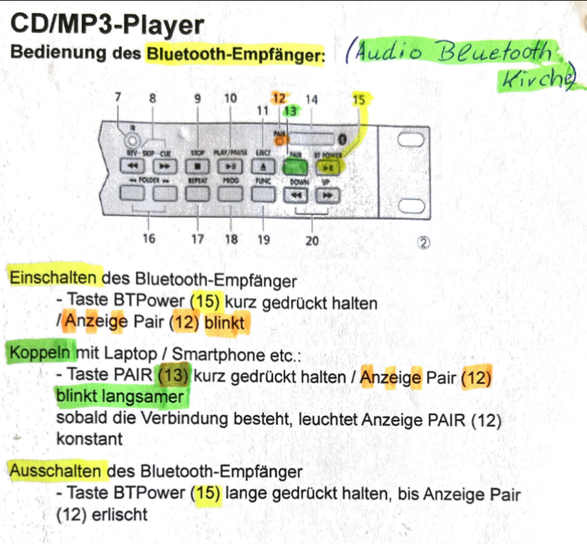 PRESET 7 Musik – Anleitung CD/MP3-Player mit Bluetooth-Empfänger beachten